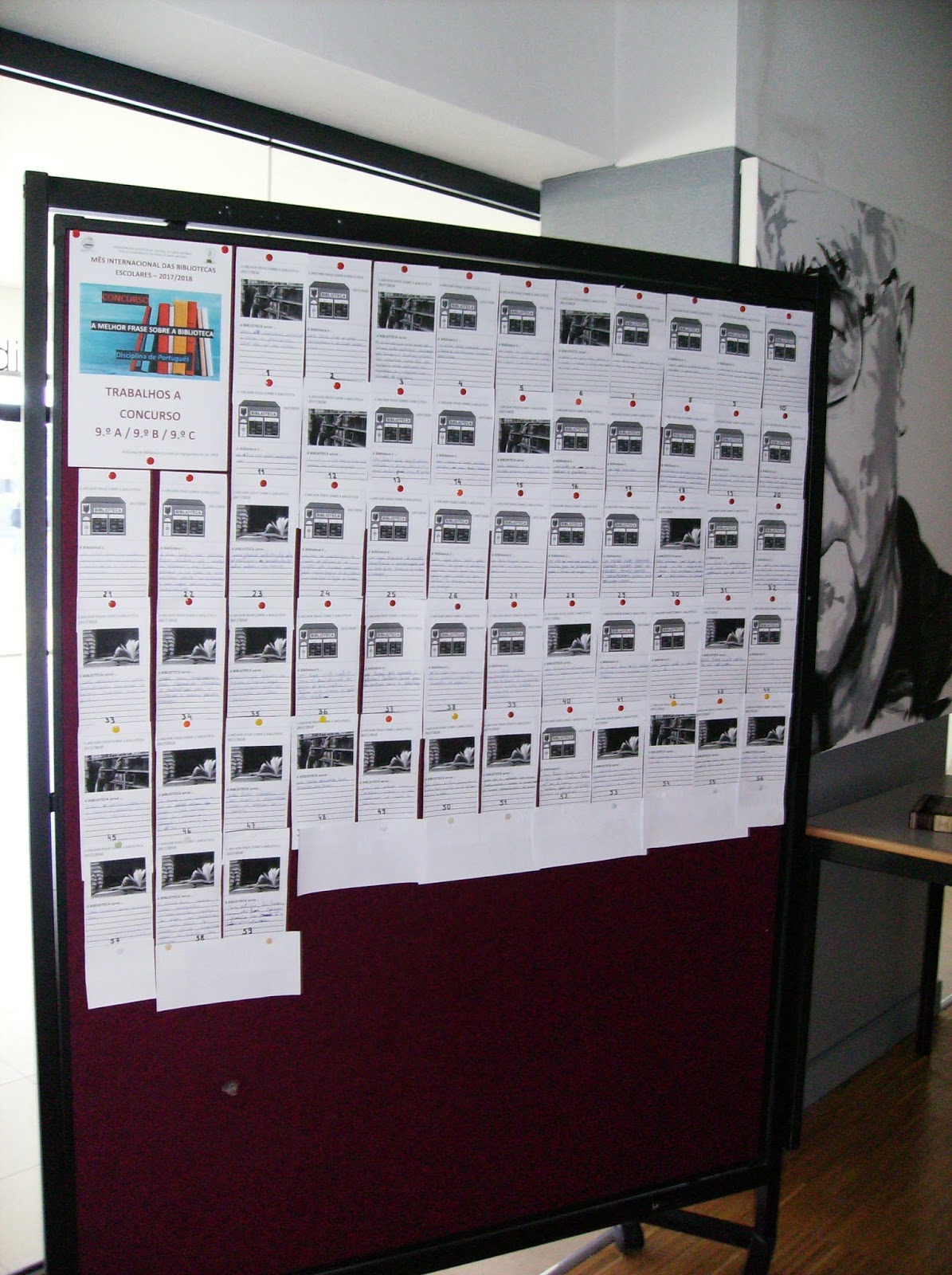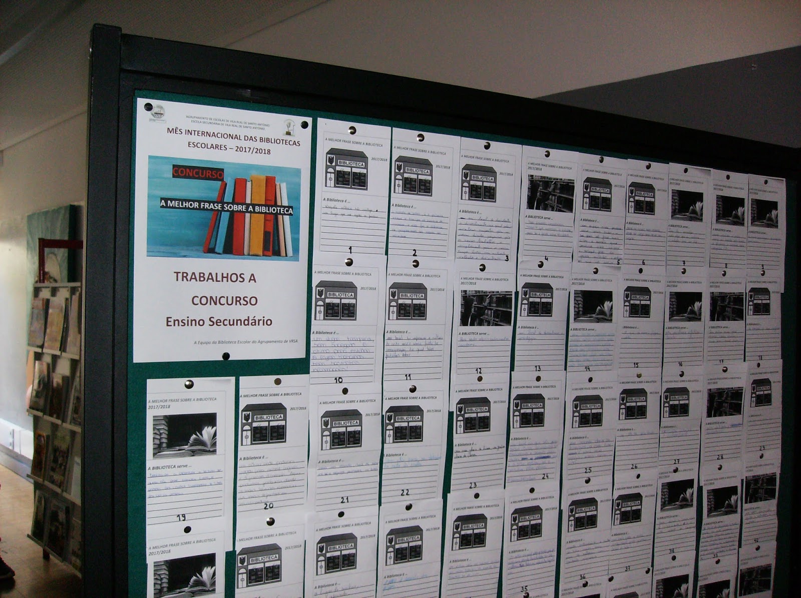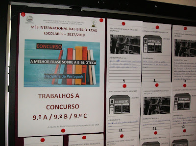 Encontram-se afixadas na BE as frases ao Concurso "A Melhor Frase sobre a Biblioteca Escolar" - 3.º Ciclo (9.º ano de escolaridade / Turmas 9.º A, 9.º B e 9.º C) e Ensino Secundário.