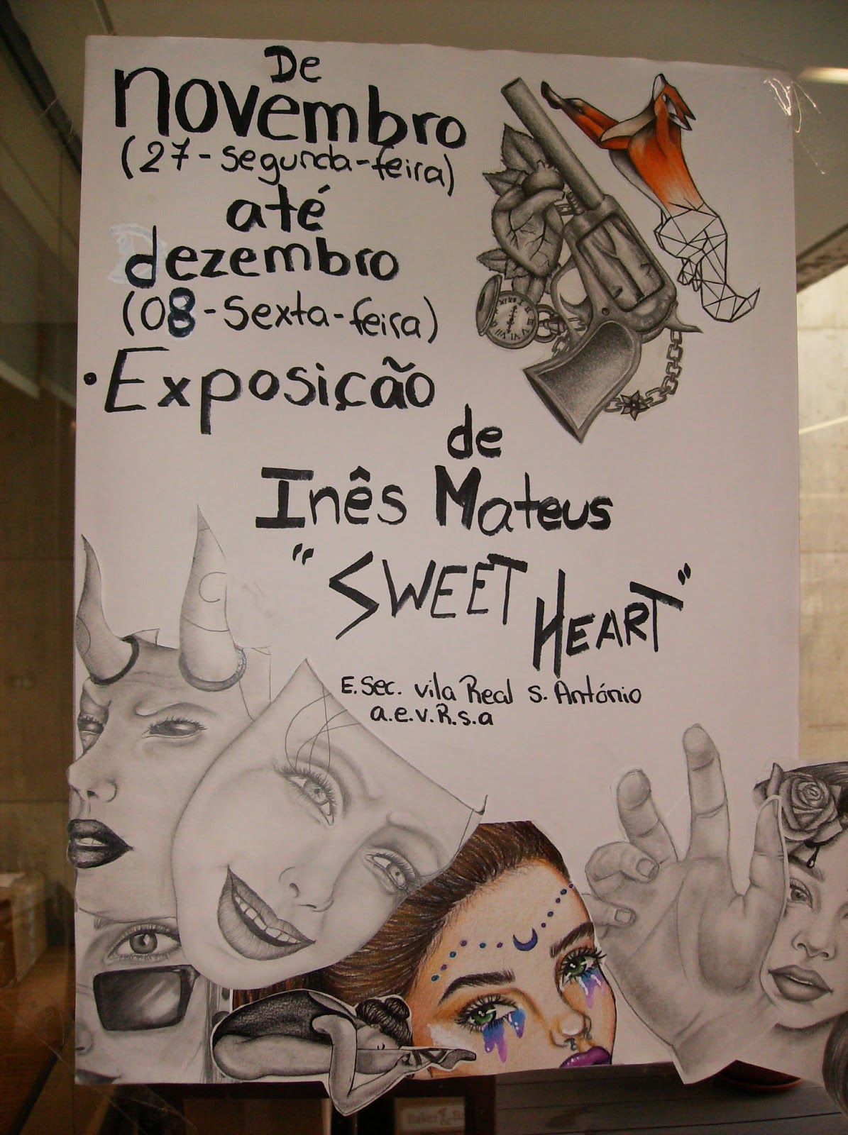 A Biblioteca Escolar da Escola Secundária de Vila Real de Santo António acolheu a exposição "Sweet Heart" da aluna Inês Mateus, do 11.º D, deste estabelecimento de ensino, por proposta sua e da professora da disciplina de Desenho A.